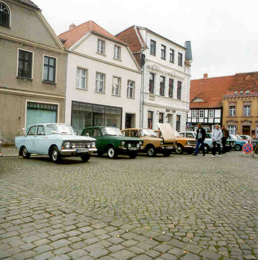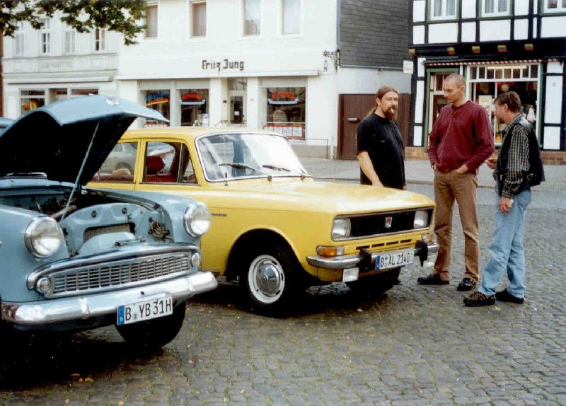 Am Sonntag, den 16. September 2001 fand unser erstes Moskwitsch-Treffen statt (Veranstalter: Reinhard Budnik, Peter Korthals). Auf dem Marktplatz der wunderschönen Stadt Tangermünde versammelten sich im Laufe des Tages insgesamt 19 Moskwitsch-Fahrzeuge zu einer kleinen Präsentation. Teilnehmer aus den Ländern Sachsen, Thüringen, Sachsen-Anhalt, Brandenburg und Berlin waren angereist.